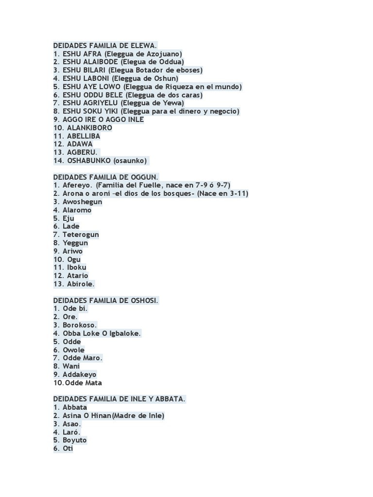 Deidades De Todos Los Orishas Pdf Santeria Deidades
