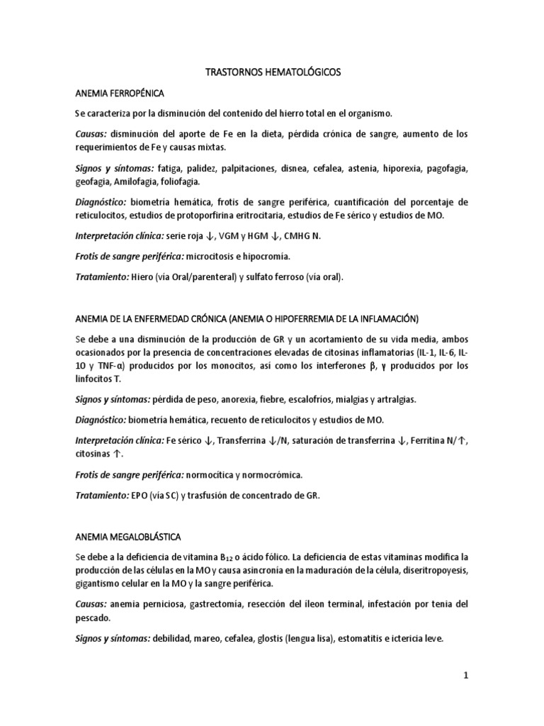 Trastornos Hematologicos Pdf Anemia Enfermedades Y Trastornos