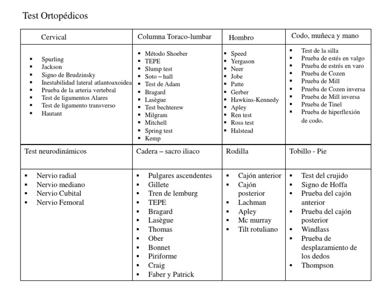 Test Ortopedicos Lista Pdf Anatomia Animal Ciencia De La Danza