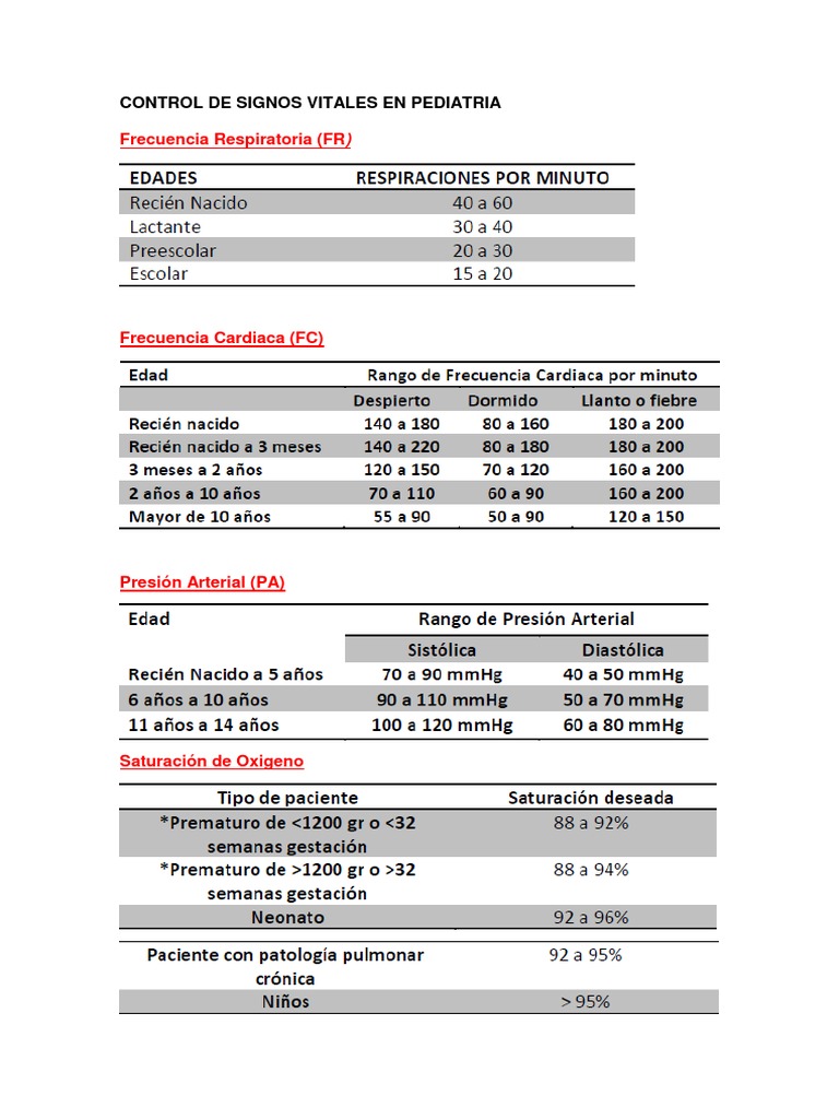 Parametros Normales De Signos Vitales En Pediatria Pdf Entersoftmore
