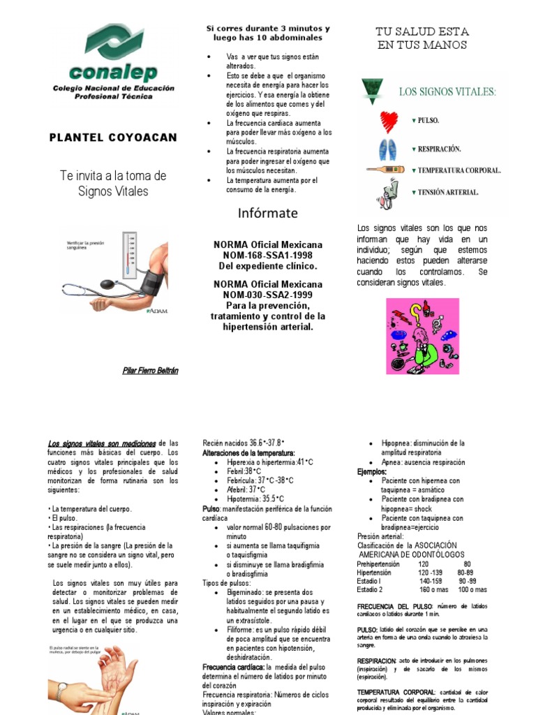 Triptico Signos Vitales Pdf Legumbres Corazon